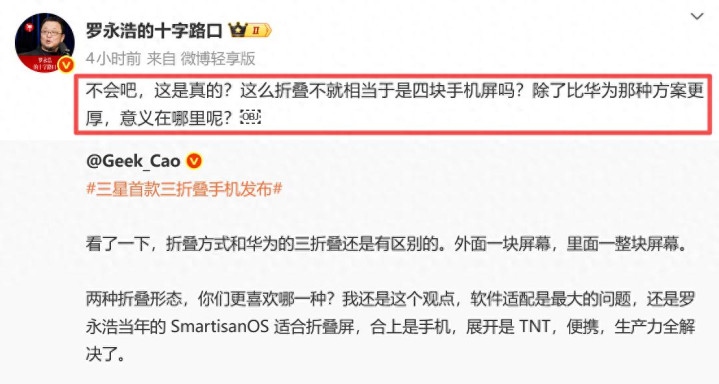 配资行情网 罗永浩开炮三星三折叠: 这价格、这体验, 凭什么贵过华为?
